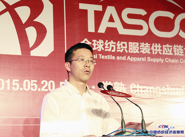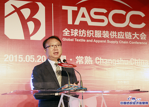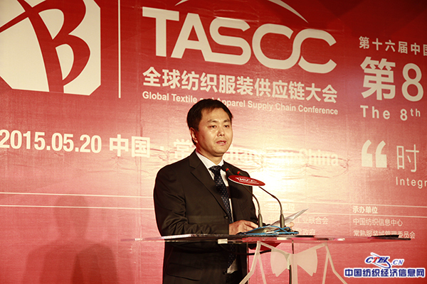 中国纺织工业联合会副会长孙瑞哲做主旨演讲《时尚产业与供应链融合——新常态下的纺织服装供应链优化与升级》