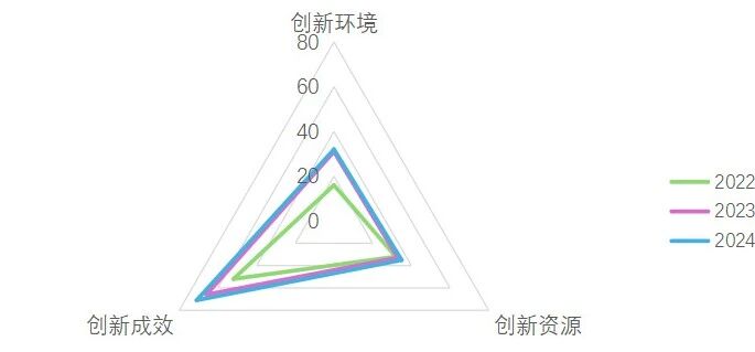 创新指数包括创新环境、创新资源和创新成效三个一级指标和若干二级指标。当前旗袍时尚产业创新发展既要求各生产经营主体不断提升自身的研发设计能力和创新水平,也要求增强跨领域的创新合作与成效。创新指数三个维度围绕这一核心理念展开,系统反映了旗袍时尚产业在增强设计研发能力、促进协同创新方面的进展。