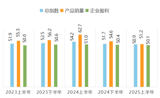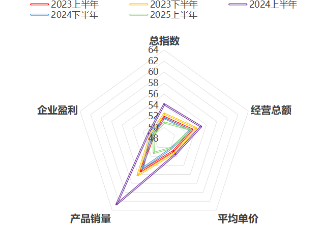 从景气指数看,2023-2025上半年,在国风热潮与疫情后消费需求逐步释放的双重刺激下,企业景气指数于2024上半年达到最高点。受内需不足、企业成本上升、市场竞争加剧等多重不利因素影响,2025上半年为最低点。