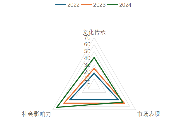 从影响力指数来看,2022-2024年,指数数值从基期的100点攀升至151点,年均增长超过22.9%。传统工艺活化度、文化融合创新度、直接销售成效、活动联动价值、主流媒体宣传力度、网络话题传播度等六个分项指标均呈现增长态势。仅从这一维度来看,旗袍就已经超越了单一的生产制造概念,步入“文化+纺织服装+时尚”融合发展轨道。