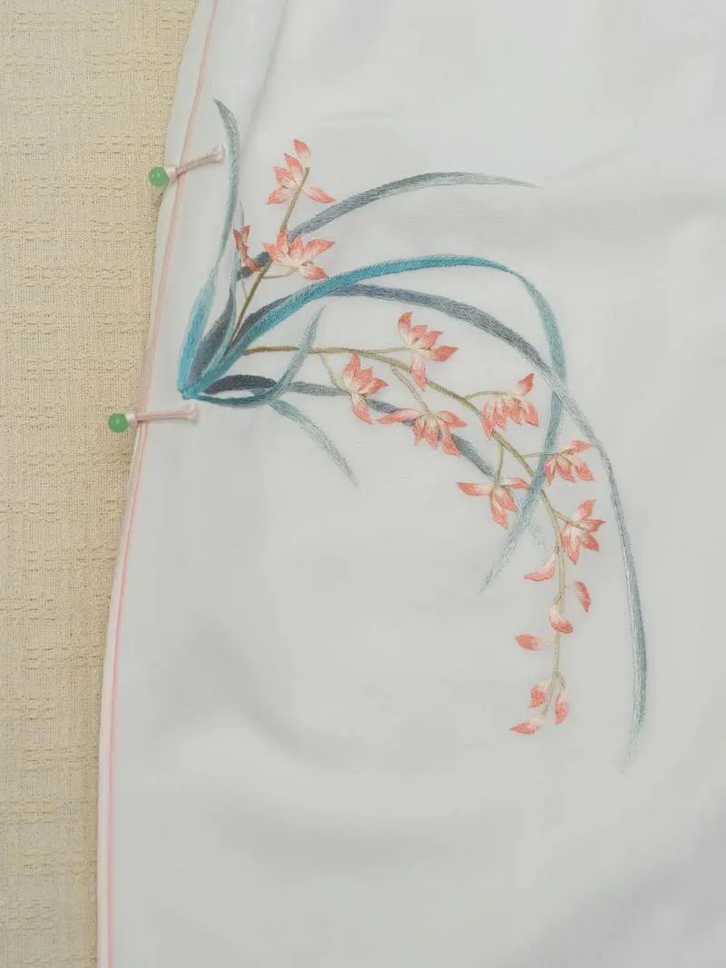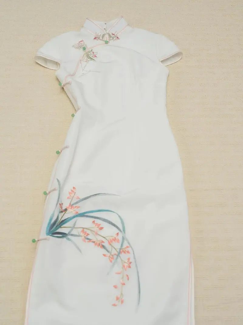 这一时期,旗袍款式的变化得到了长足发展。勤劳聪明的绣娘,把清代满幅繁杂、多层次的大小绣花精炼后重新安排组合,绣在改良旗袍的显眼部位上,使旗袍更增强了高贵与华丽;此时流行的旗袍,更强调滚边修饰,用线条来加强凸现东方女性的曲线美,用花草鸟兽等各色多样的盘纽,为旗袍画龙点睛,使其更富雍容典雅的气质。