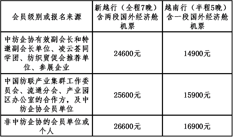 (1)由于同期参展企业优先原则,本次研学组团名额有限,请速报名!名额确认将以团费到账时间为序,请计划参与本次中纺企协“凌云荟·新越行”的企业家尽快填写中纺企协“凌云荟·新越行”参团报名表.docx发送至我会;