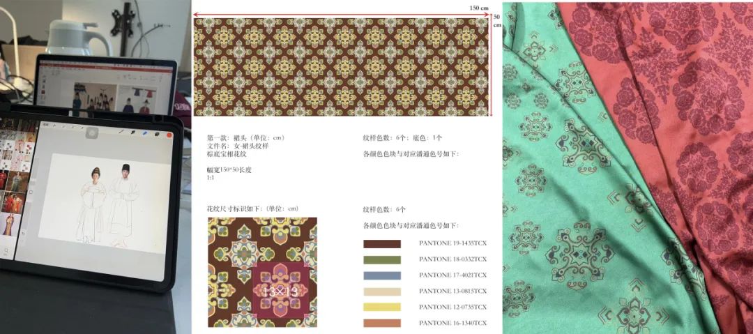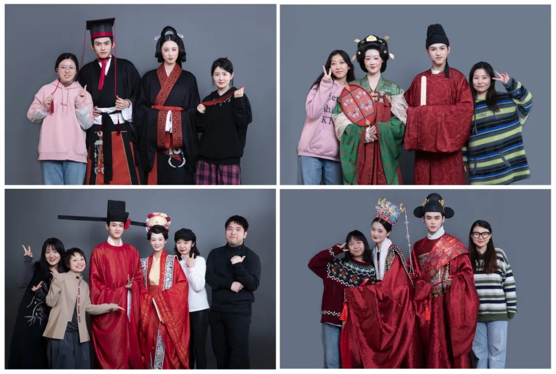 在梁燕教授带领下,参与本次复原项目的团队成员均为服装艺术与工程学院2020级、2021级、2022级、2023级服装设计与创新及服装设计管理方向的硕士研究生,参与演出的团队均为时尚传播学院的表演专业师生们。该项目是学校坚持“党旗红引领时尚红”特色党建育人模式,发挥设计力、科技力、组织力、传播力优势,以传统文化研究为根基、以科研项目为抓手,以培养知识、能力、素质协调发展的综合创新人才为目标的典型实例。研究团队围绕在学科建设和研究生人才培养过程中提出的“实题实作”主题组织教学与科研,在实践中全面培养学生的学术研究和设计创新能力。