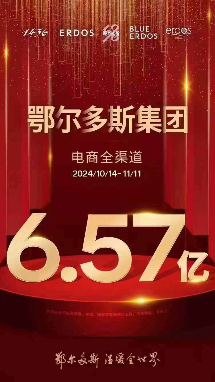 鄂尔多斯集团电商团队再传捷报,今年“双11”周期取得了全平台6.57亿的好成绩!以温暖之心披荆斩棘,再攀业绩高峰。