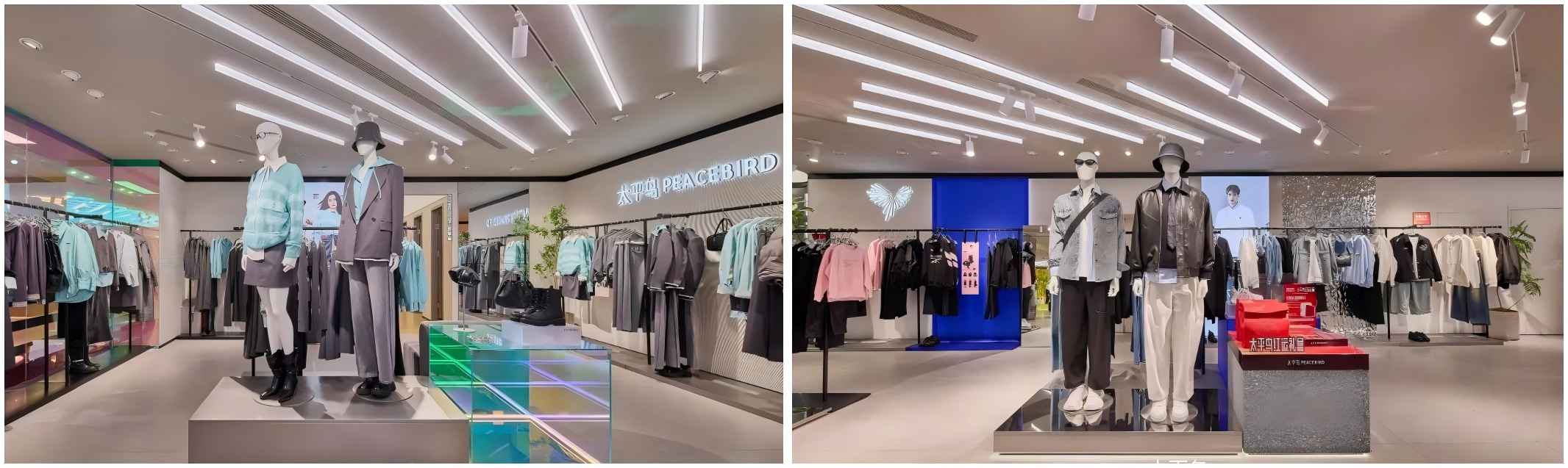 在众多品牌因线上消费蓬勃发展而逐渐削弱线下投入时,太平鸟却逆势突围,以创新实体零售战略推动品牌升级。自2024年5月首家品牌旗舰店在宁波揭幕以来,太平鸟先后在武汉、长春、杭州、深圳、重庆等全国多个重点城市的核心“黄金地标”位置,精心布局线下零售体验场所。各旗舰店汇聚丰富多样的男女装品类、齐全的产品线、缜密的店务管理体系以及过硬的门店运营能力,如同品牌在黄金商圈构筑的坚实壁垒,极大地巩固了市场优势地位。